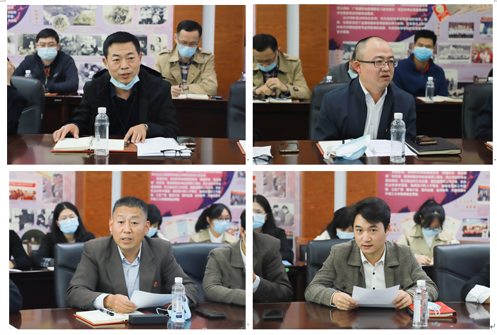 本次主题党日活动由学院党委书记曹文献主持,他首先汇报学院党建工作情况;接着教工第五党支部书记杨锋介绍党支部建设情况,支部党员代表缪秉魁、王葆华、李军朝和入党积极分子闫磊分别做交流发言,最后邓军书记对学院和支部党建工作做法和成效给予了充分肯定。