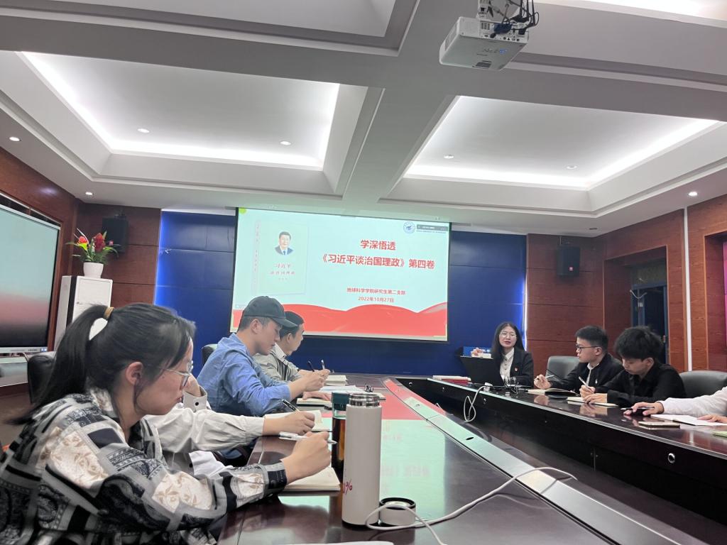 为深入学习贯彻习近平新时代中国特色社会主义思想,读懂用好《习近平谈治国理政》第四卷,学院研究生第二党支部于2022年10月28日晚上在01215会议室召开专题学习会议,支部全体党员参加,会议由党支部书记吕思慧同志主持。