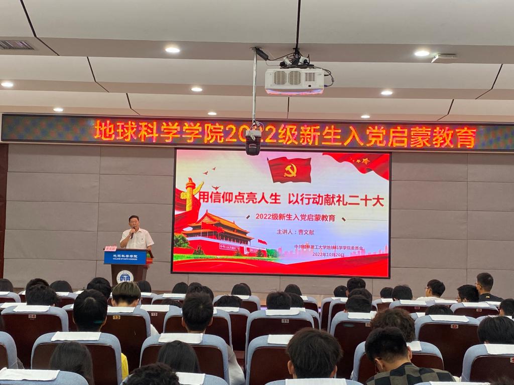 1020日晚上,beat365手机版官网入口党委书记曹文献在逸夫楼0501报告厅为我院2022级新生作题为“用信仰点亮人生,以行动献礼二十大”的入党启蒙教育,报告会由2022级新生辅导员周密老师主持,510余名新生参加。