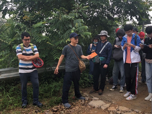 广西地质环境监测总站桂林站韦专高级工程师为地质工程专业学生进行野外授课