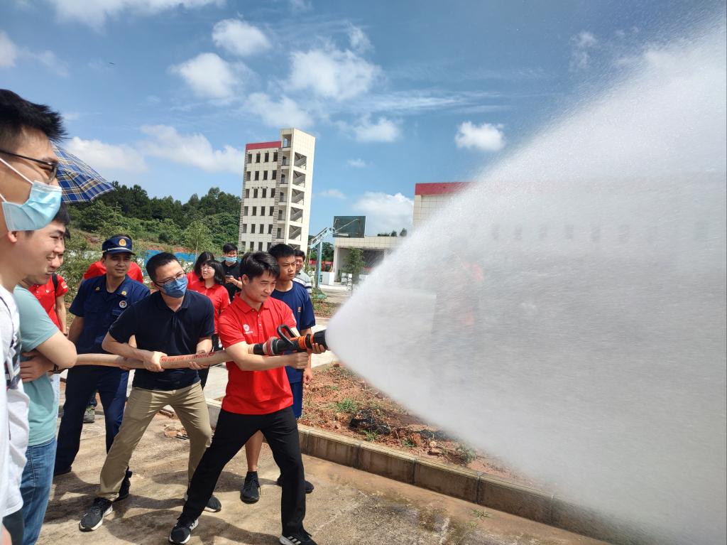 本次培训重在实际操作,共分为消防安全知识讲座和消防实操演练两个部分。在消防实操演练培训现场,雁山消防救援大队相关负责人手把手为参训人员作灭火器实际操作、消防水带的连接和使用、防火逃生器材使用等多个科目培训,并进行详细、全面的讲解。参训教师经过实际操作、亲身体验,消防安全技能实际操作水平得到有效提高。