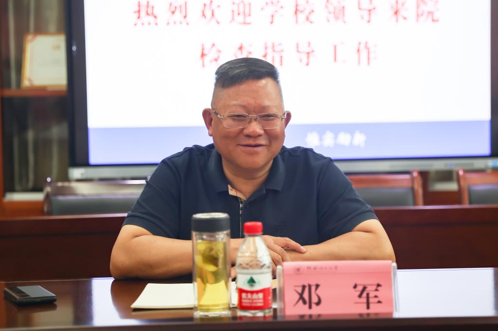 6月8日上午,学校党委书记邓军到我院调研,与我院领导班子在雁山校区逸夫楼01215会议室座谈,了解学院近年来发展情况,对学院发展提出明确要求,希望学院领导班子带领全体教职工团结奋斗,在工作上出新出彩,推动学院高质量发展,为学校争取更大光荣。学校党办校办、组织部、研究生院(研究生工作部)、发展规划与教学质量监控中心、人事处相关人员陪同调研并就相关工作给以回应。