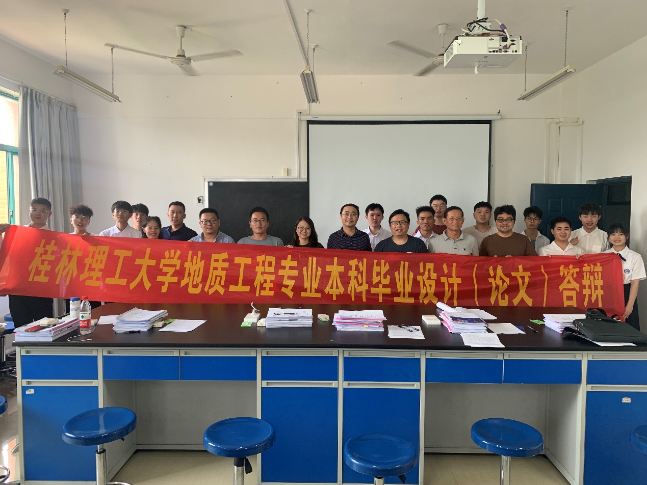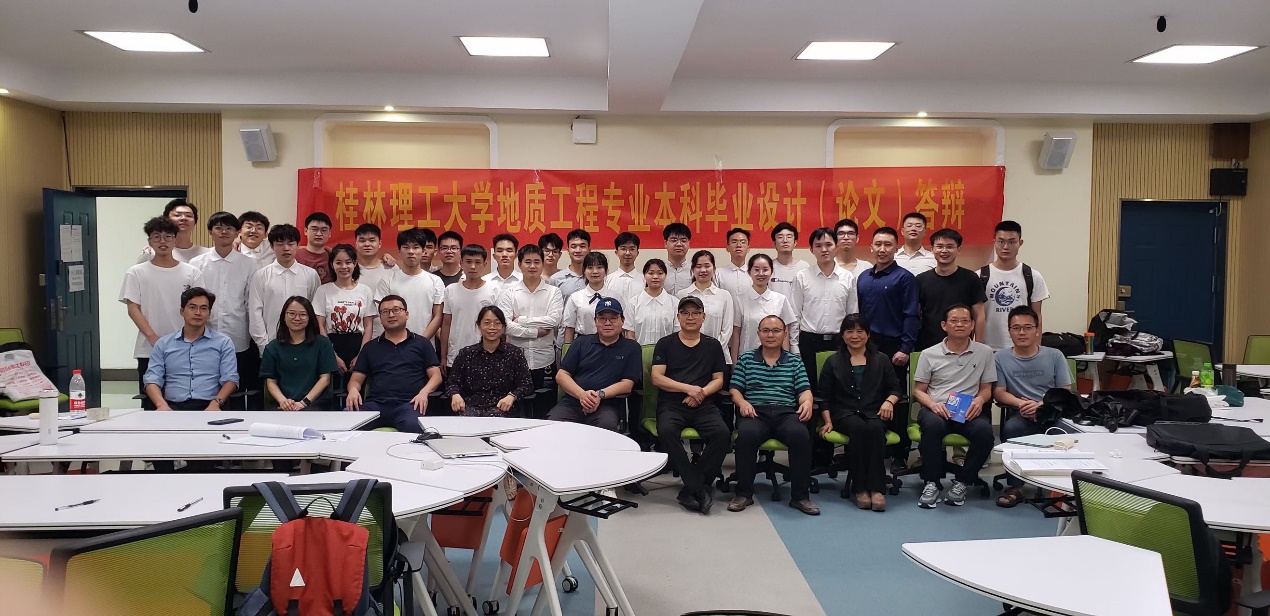 2022年6月2日,我院2022届地质工程专业本科毕业生论文(设计)答辩大会分别在雁山校区01415和014112个会场有序进行。广西华蓝岩土工程有限公司李爱军教授级高级工程师、广西桂林水文工程地质勘察院俞敏教授级高级工程师和曾宪斌高级工程师、广西地质环境监测总站桂林站韦专高级工程师受邀作为专家评委参加了答辩会。许礼记、潘俐傧、黄欣然等29名本科生参加了此次答辩。