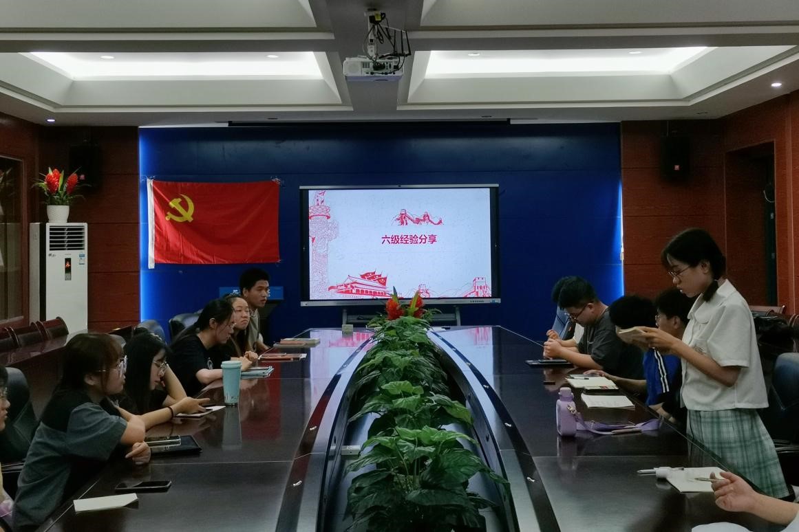 531日,我院本科生第四党支部于逸夫楼01215会议室组织全体党员开展五月主题党日活动,本次活动主题为英语四六级经验分享,会议由缪海珊同志主持。