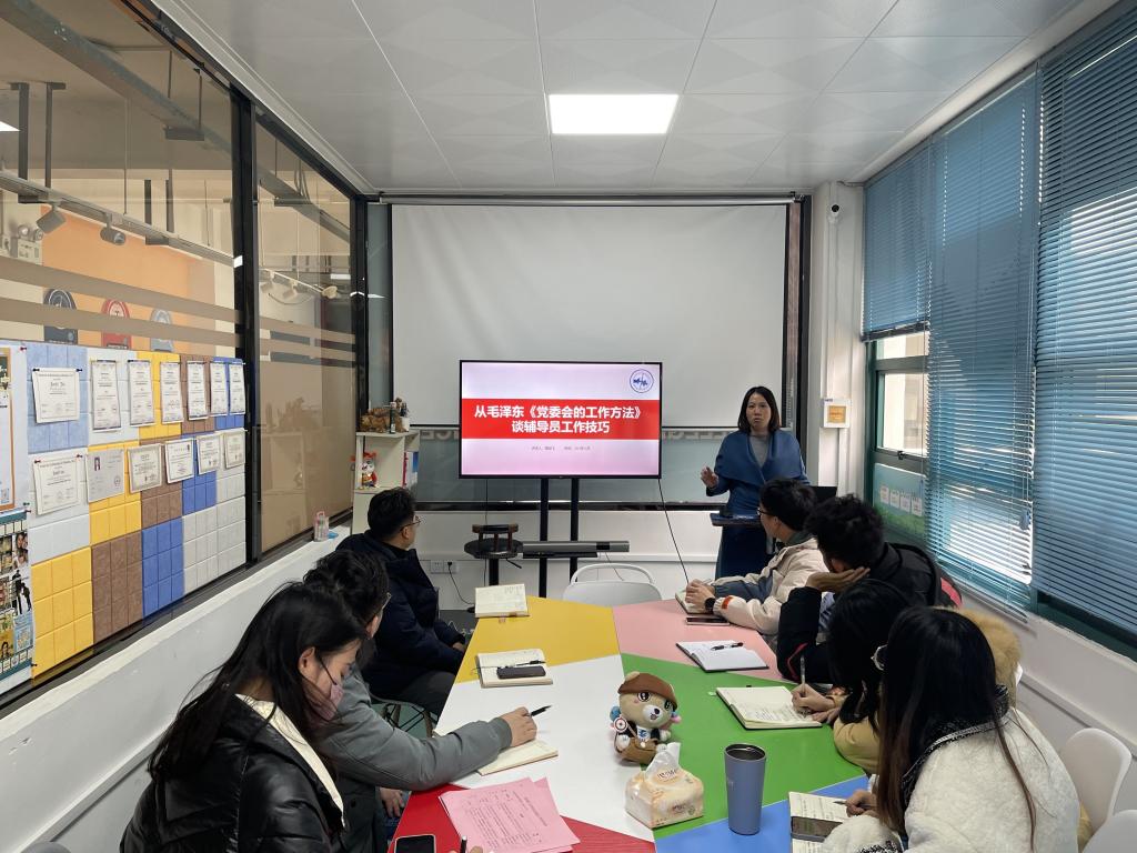 最后,陶剑飞运用毛泽东同志《党委会工作方法》,给每一位辅导员年度工作做了点评,指出“应该做什么”,指明“应该怎么做” ,她表示,要建设团结统一、步调一致、坚强有力的学生工作集体,确保决策一旦形成就雷厉风行抓落实、政策一旦出台就不折不扣抓落地、任务一旦明确就紧张快干抓见效。注重调查研究、做到“胸中有数”,注重统筹协调、做到“会弹钢琴”,注重务实干事、做到“抓紧抓实”,落实“精兵简政”,养成记笔记习惯,提升自我总结能力,按照“力戒骄傲”和严以律己的要求,明晰角色定位,注重价值引领。