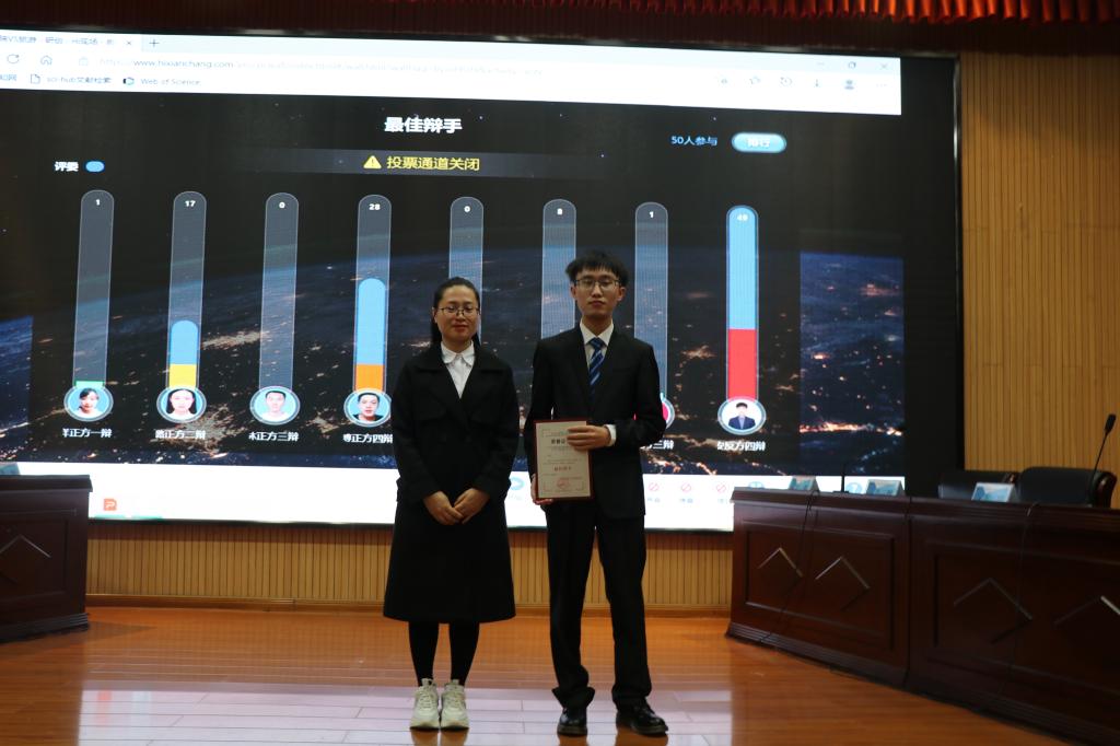 最终,通过双方精彩绝伦的辩论,我院辩论队以压倒性优势拿下最终冠军,我方四辩2020级资源与环境专业谢维安同学获得“最佳辩手”称号。