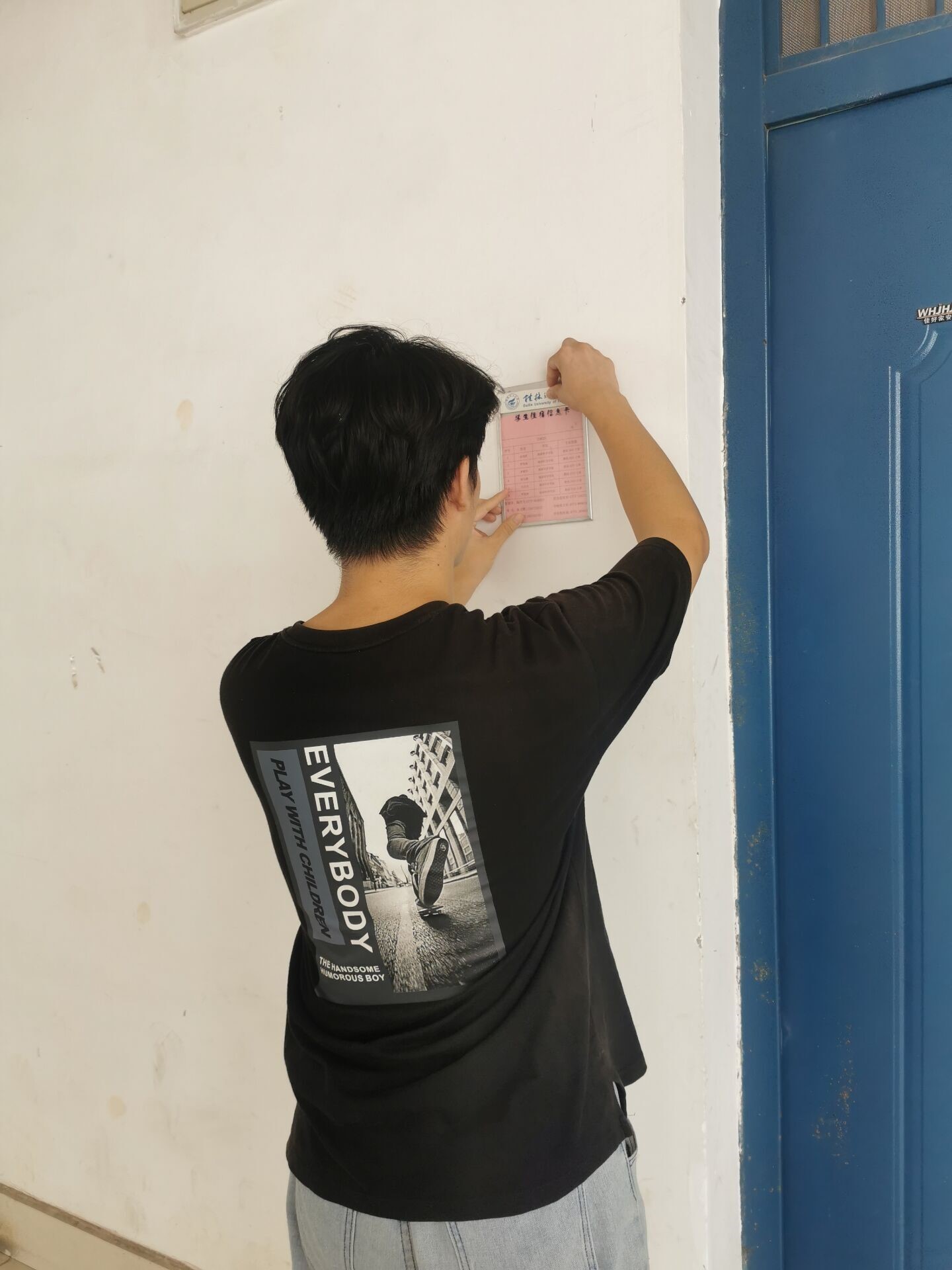 同时,为确保宿舍更好的管理,以及学生在遇到情况时能及时联系辅导员和相关部门。组织成员在确定宿舍成员信息表无误后,将其发放到学生手中,并按要求将印有宿舍成员信息、辅导员和学校保卫处联系电话等的信息表放入信息栏中。此次信息表的发放,有利于落实宿舍管理制度。同时,也为学生在遇到突发事件时,能够及时上报得到有效的处理,为学生身心健康和财产安全提供了保障。