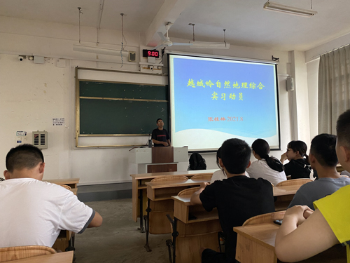 张桂林教授在会上向同学们详细介绍了实习区的地质地貌、实习重要性及实习计划,包括实习线路、内容、注意事项及相关要求。会上,张教授特别强调实习安全问题、疫情防控,把实习安全及疫情防控摆在了第一位,要求各班班主任积极落实好本项工作,避免实习出现任何意外。同时,张教授重要强调以下三点:一是必须严格听从指挥,禁止擅自离队,出现特殊情况必须及时上报,不能隐瞒。二是班主任做好小组分组工作,要求男女搭配。三是发扬团队协作精神,学习长征精神,认真做好野外实习的准备。
