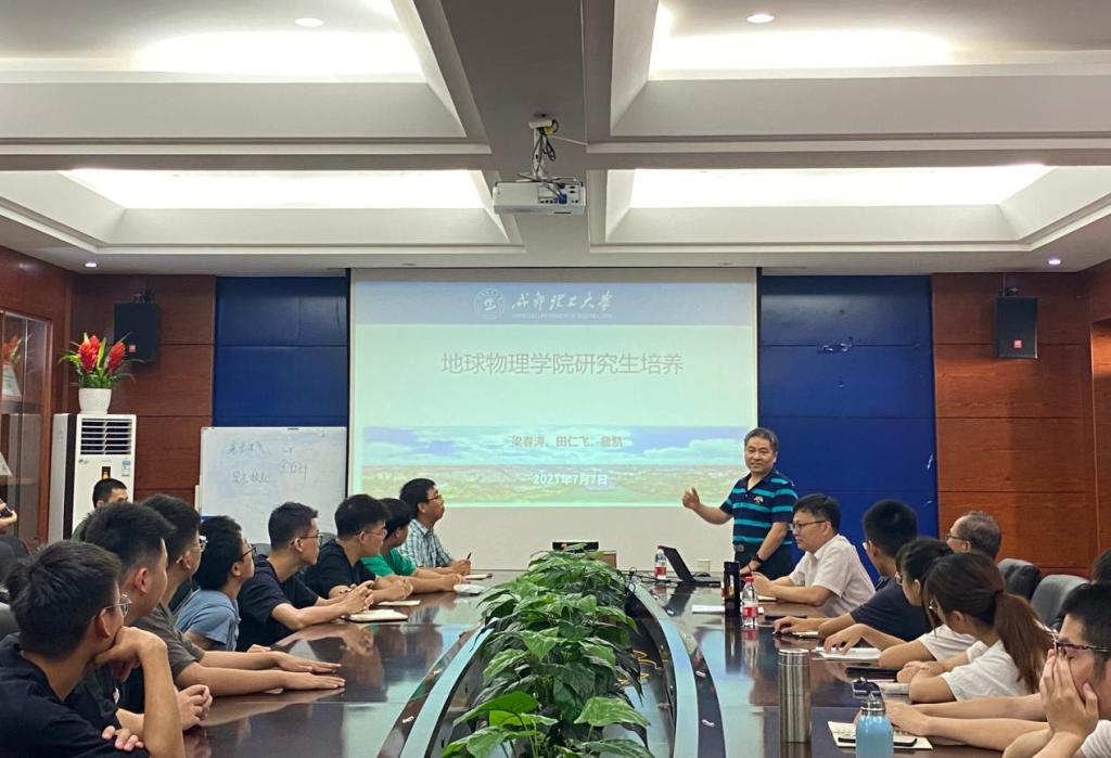 副院长梁春涛教授从学院发展历史、师资力量、科学研究、人才培养、国际交流和奖助体系等方面详细介绍了成都理工大学地球物理学院研究生招生、培养和就业的有关情况。使广大考生深入了解了成都理工大学地球物理和勘技的学科特色和研究生培养模式。随后,分管研究生工作的老师和辅导员对同学们提出的有关研究生招生数量、学院研究生日常生活的条件和管理等方面的问题进行了解答,增进与考生之间的互动。