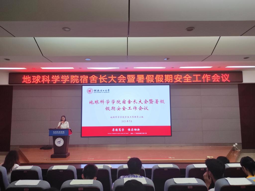 2021年7月5日中午,beat365手机版官网入口在逸夫楼01501报告厅召开宿舍长大会暨暑假假期安全工作会议,会议由学工办王成瑞老师主持,学院党委副书记陶剑飞、各年级辅导员和全院宿舍长参加。