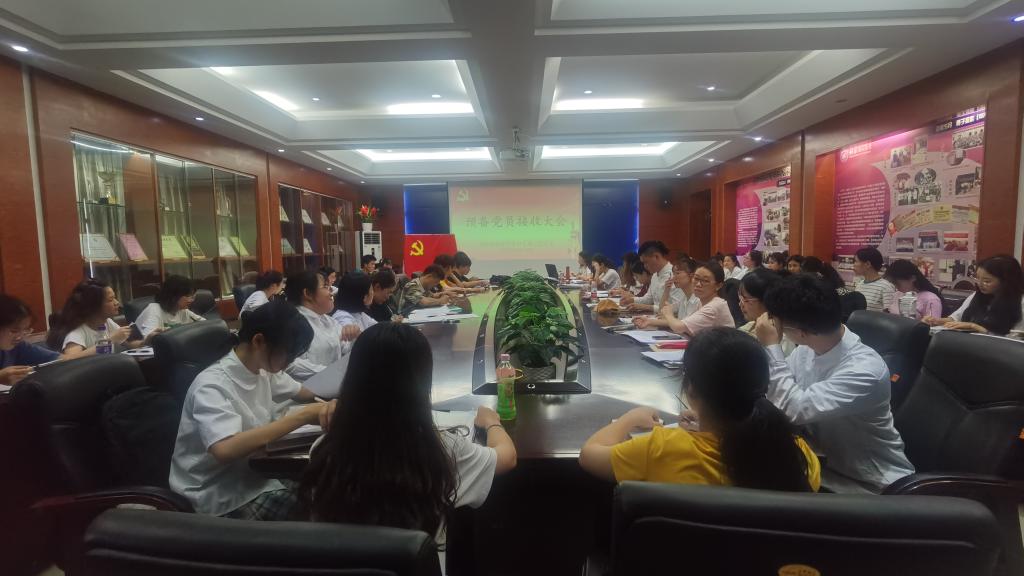 会上,谢蕊连同志介绍预备党员转正的流程,与会党员就何丽佳、展博瀚、孙雨萌、赵嘉棋、韦彦章等10名同志是否能按期转为中国共产党正式党员的问题进行讨论。