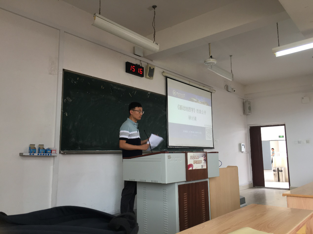 为进一步提升青年教师的课程思政教学水平,加强教学经验交流,全面提升课程育人功能,5月27日学校教师发展中心与beat365手机版官网入口联合举办了《基础地质学》校级公开观摩课活动,国家级一流课程负责人赵义来副教授作示范讲课并分享教学心得。教务处相关工作人员、各学院部分教师和beat365手机版官网入口白令安副院长等40余人到场听课。