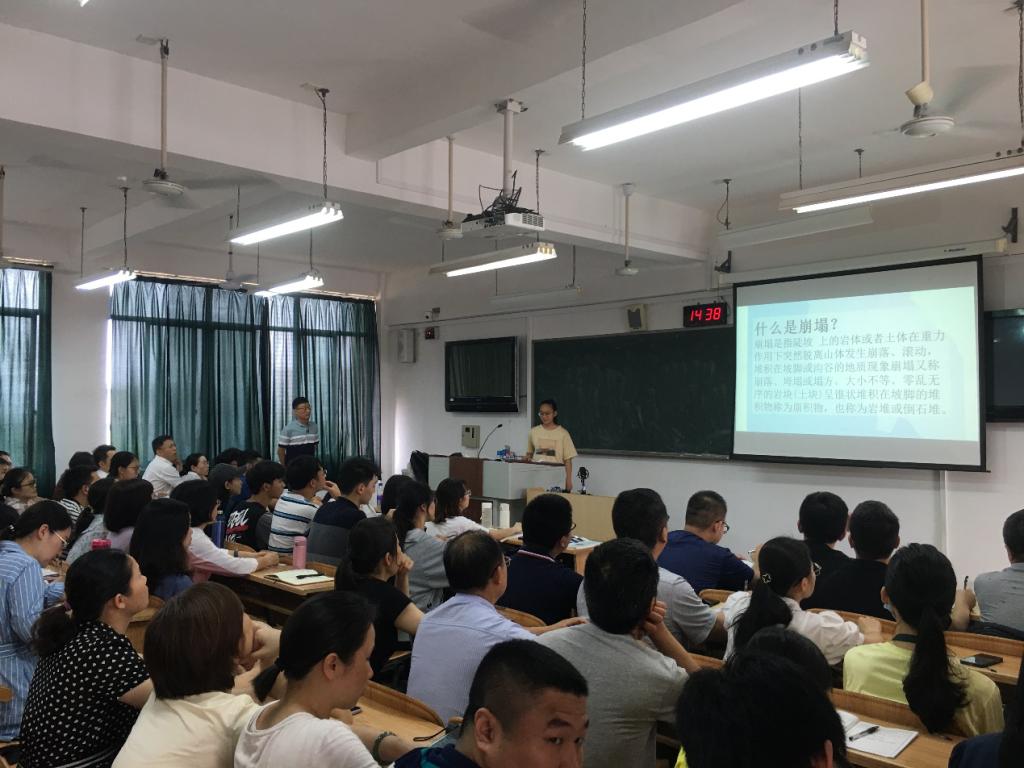 课堂上,来自水文2020-1班的4名学生代表纷纷走上讲台,围绕崩塌地质灾害的成因、机制及防治等内容进行了翻转讲解,赵义来副教授进行了针对性的讲评,并穿插讲述了生态文明建设和以人为本等思政内容。示范课后,赵义来老师还与参加听课的教师分享了教学设计理念和实施过程中存在的问题和对策,广大教师就翻转课堂的知识点、时间分配和人员选择等面进行了交流互动。从学生的角度设计教学,注重师生角色互动的授课方式,较好的体现了以学生为中心的教学理念,有效的调动了课堂氛围,增强了学生自主学习的积极性。