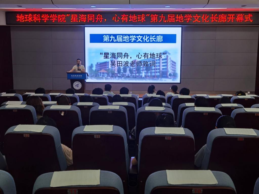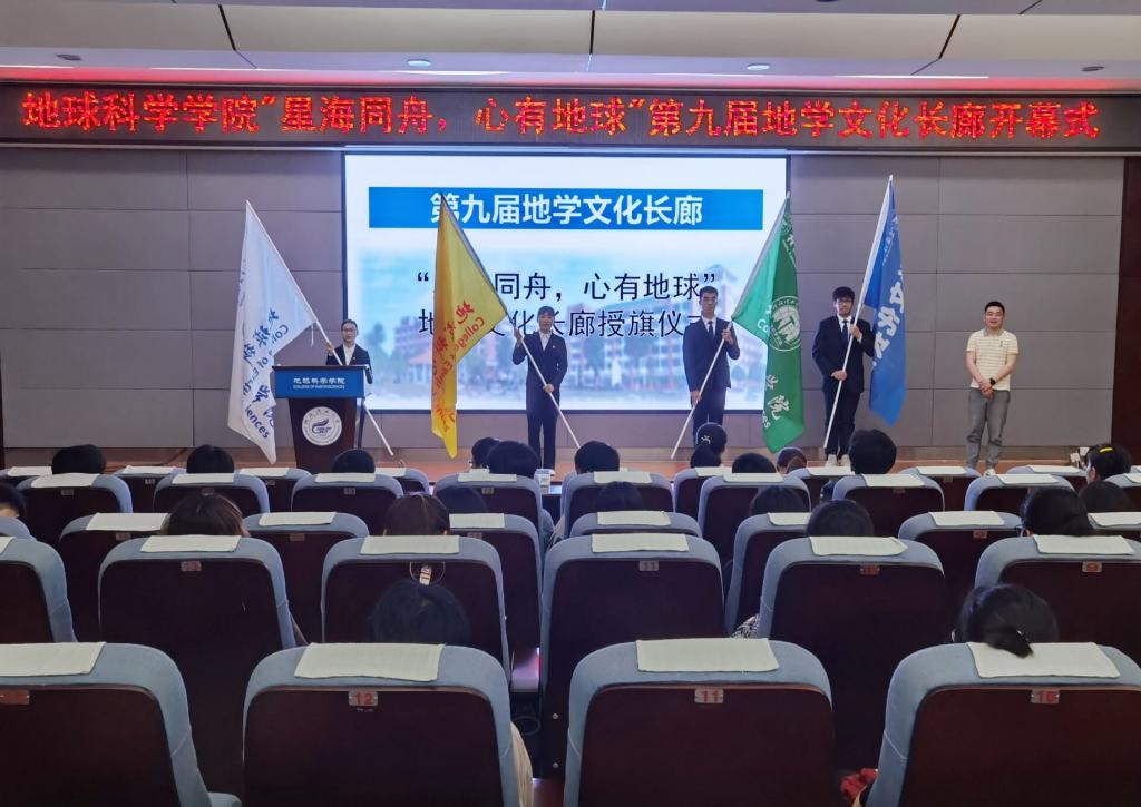最后,吴田波老师为地学文化长廊的主要筹备人员授旗,宣布本次地学文化长廊系列活动正式开幕。