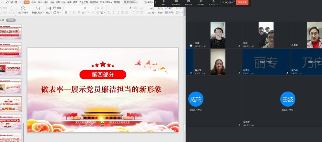 为深入贯彻党的十九届五中全会精神,并进一步深入推进党风廉政建设,2020年12月11日,本支部以线上形式召开了“学习十九届五中全会精神,加强党风廉政建设”主题党会,支部书记孙媛主持会议。