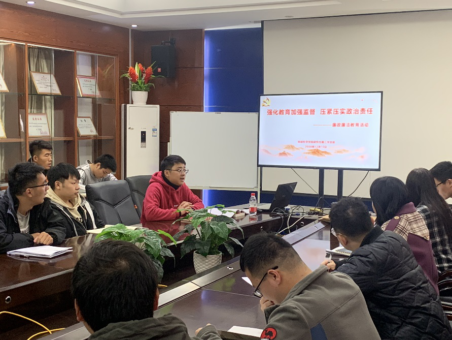 12月10日,beat365手机版官网入口研究生第三党支部的全体党员在01215会议室组织开展了十九届五中全会精神和廉政廉洁教育主题学习,会议由支部书记陈文甫同志主持。