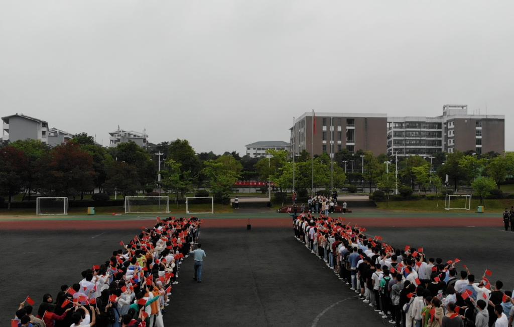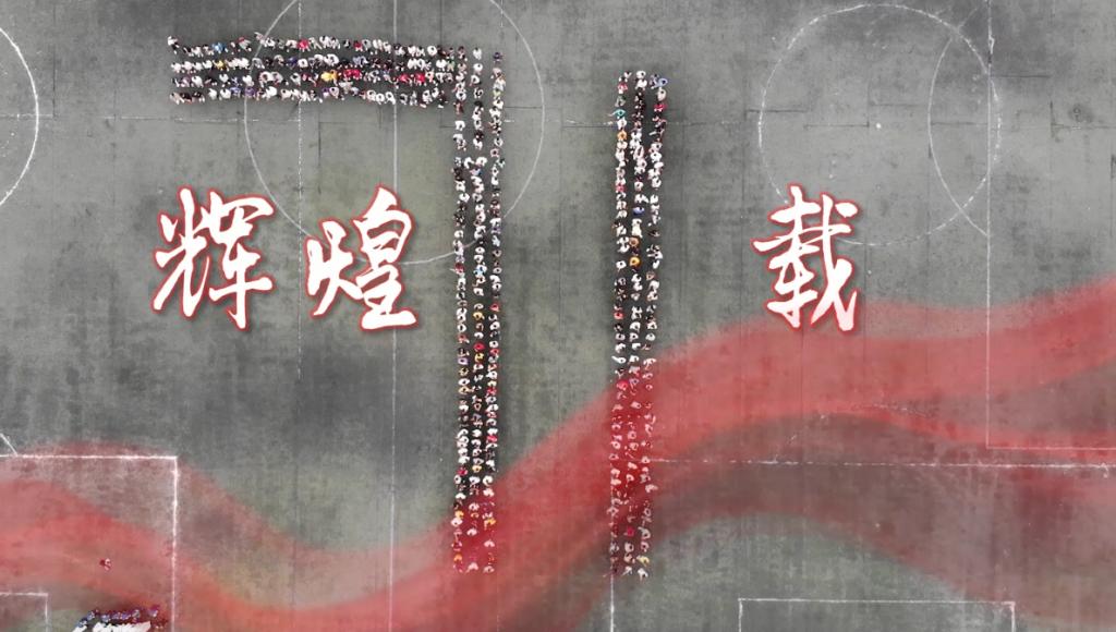 升旗仪式后,我院师生在国旗下同唱一首歌《我和我的祖国》,以特殊的方式向伟大祖国表达崇高敬意与无限祝福,为新中国71华诞献礼。随后,450多名学生在表演区整齐的排列成方块队,期间变化“71”为字样图案。伴随着悠扬的音乐,大家共同挥舞着手中的国旗,一起放声歌唱《我和我的祖国》,在同一首歌的旋律下,共同向祖国深情表白,礼赞伟大祖国,绽放爱国激情。