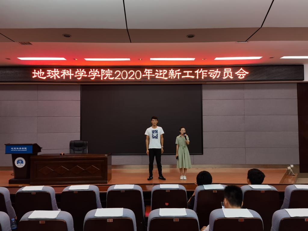 9月10日,我院2020年迎新工作动员会在地学院报告厅顺利举行。动员会由学院团委副书记吴田波老师主持,2020级新生辅导员夏雪莲、王成瑞和近200名志愿者参加了会议。