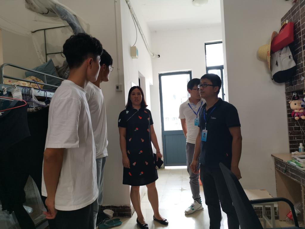 8月29日下午,为深入了解开学初学生宿舍情况,引导学生重视疫情防控,对返校学生进行关怀慰问,beat365手机版官网入口党委副书记陶剑飞带领学院全体辅导员老师走访了学生宿舍。