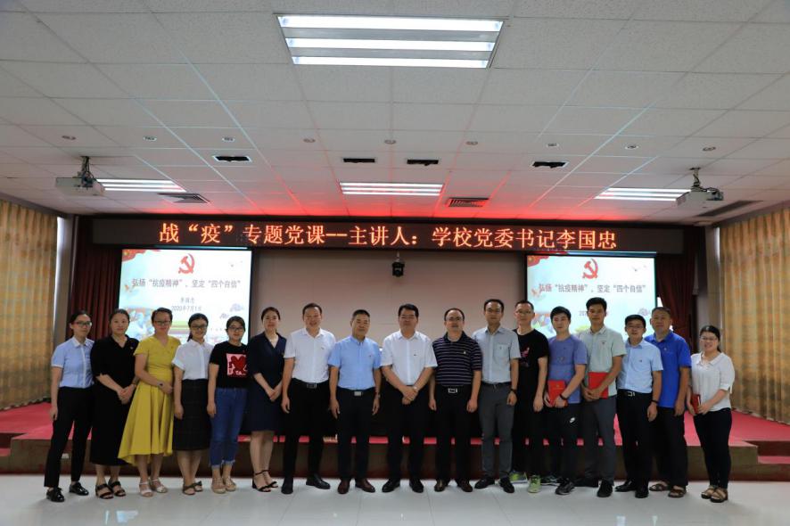 为庆祝中国共产党成立99周年,6月30日下午,学院党委书记曹文献以《让党旗始终高高飘扬,抓紧抓实抓细常态化疫情防控工作》为题,给全院师生党员讲授战“疫”专题微党课。7月1日下午,学校党委书记李国忠以《弘扬“抗疫精神”,坚定“四个自信”》为题,为教工第五党支部全体党员上了一堂生动的战“疫”微党课,共同庆祝党的生日,一同过组织生活。