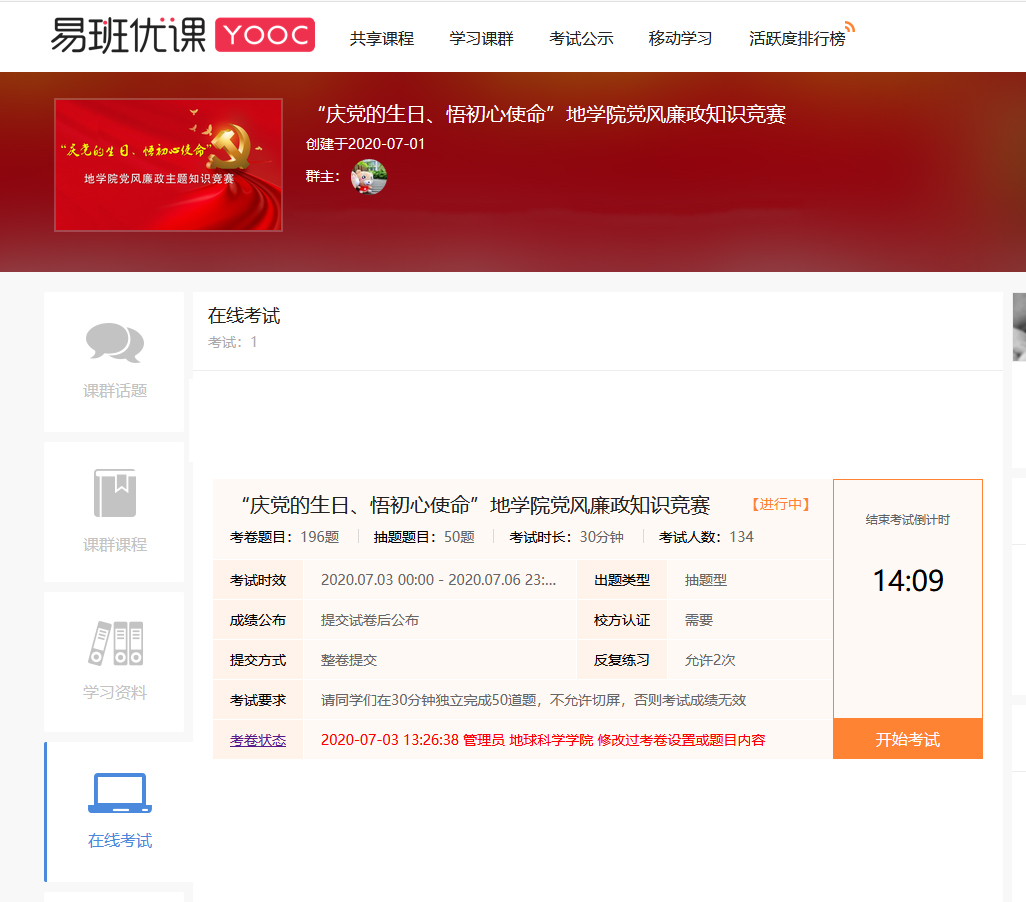 7月3日,为深入推进廉政教育活动,进一步提升广大党员廉洁自律意识,学院组织开展“庆党的生日、悟初心使命”党风廉政主题知识竞赛,本次知识竞赛通过易班APP网上开展。
