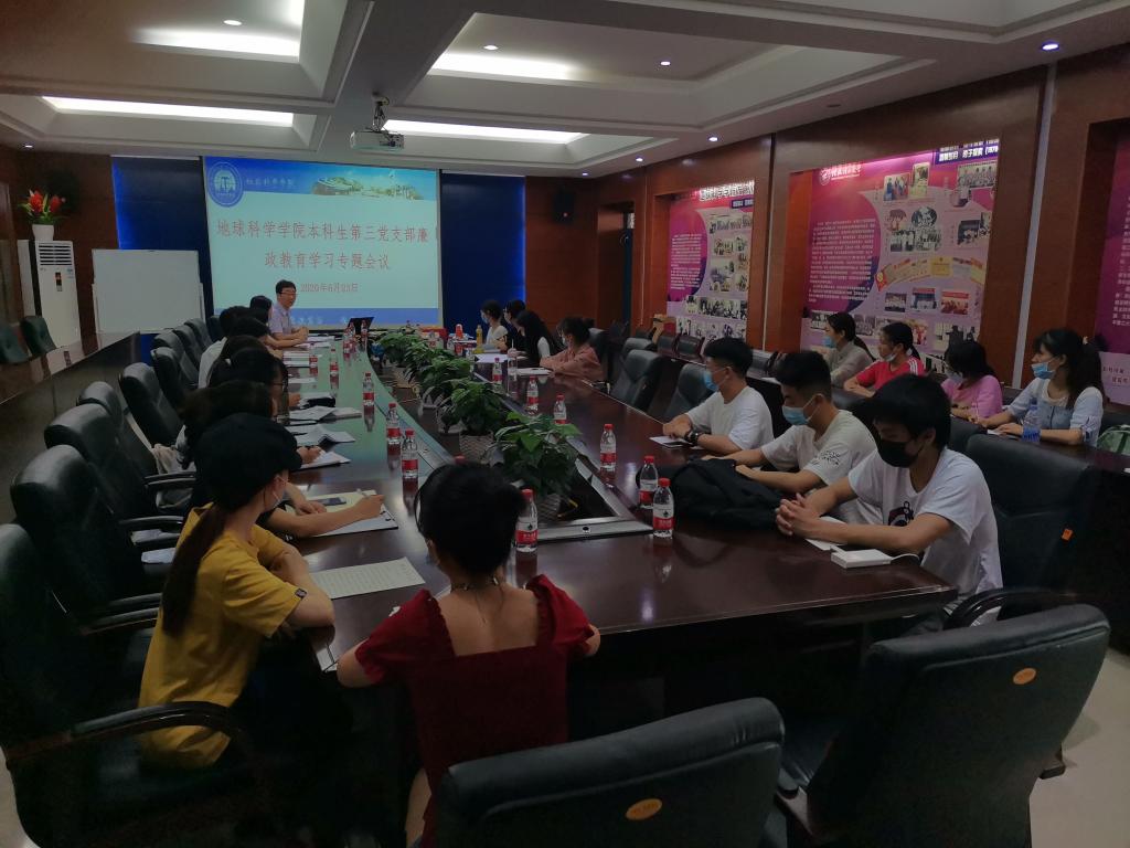 为进一步学习贯彻习近平新时代中国特色社会主义思想,坚决贯彻党中央决策部署,切实肩负起管党治党政治责任,持续推进全面从严治党和党风廉政建设向纵深发展,2020年6月20日,中共beat365手机版官网入口本科生第三党支部于01215会议室召开会议,学习党风廉政教育及开展党风廉政教育活动周,会议由支部书记谷正杰老师主持。