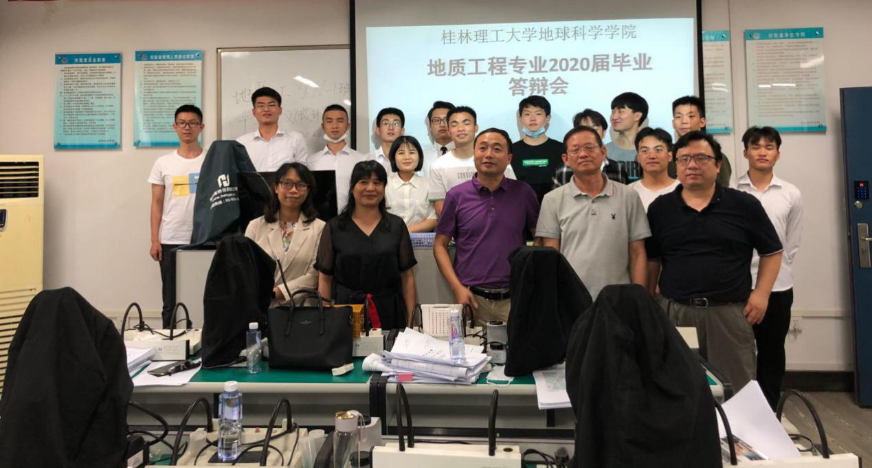 2020年6月6日,地质工程教研室在雁山逸夫楼01207和01404会议室召开了2020届地质工程专业本科毕业生论文答辩会。广西华蓝岩土工程有限公司李爱军教授级高级工程师、广西桂林水文工程地质勘察院俞敏教授级高级工程师和曾宪斌高级工程师、广西地质环境监测总站桂林站韦专高级工程师受邀作为专家评委参加了答辩会。