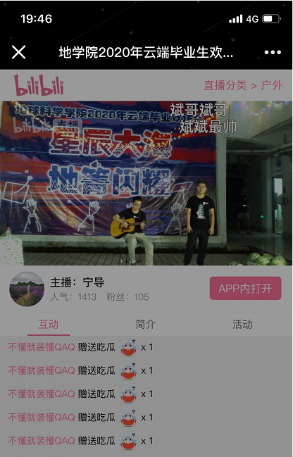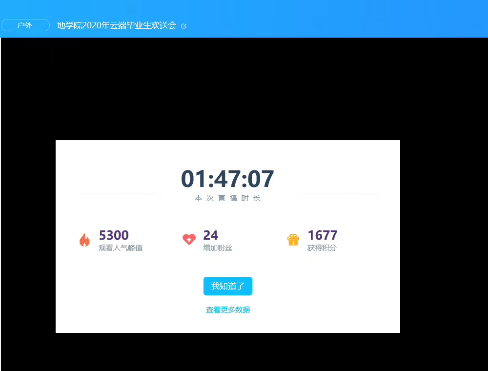 2020年6月16日晚7:30,我院2020年云端毕业欢送会顺利举行,此次晚会主题为“星辰大海,地菁闪耀”,晚会主会场为雁山校区24栋宿舍楼,分会场为各毕业生宿舍,活动形式为线上直播,学院党委副书记陶剑飞,学工办谷正杰、陈文甫、吴田波、宁乃向、周密、钱顺、林丽专老师出席本次晚会。