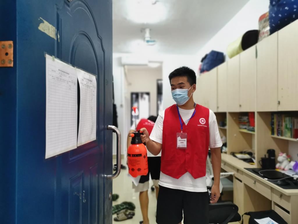 消杀工作过程中,志愿者们全程佩戴口罩,礼貌与各宿舍长进行沟通,认真负责对每个宿舍都进行了全方位、无死角的消杀工作。志愿者们对待工作的负责态度得到了同学们的一致好评,同时得到了同学们的全力支持与配合,宿舍消杀工作圆满完成。