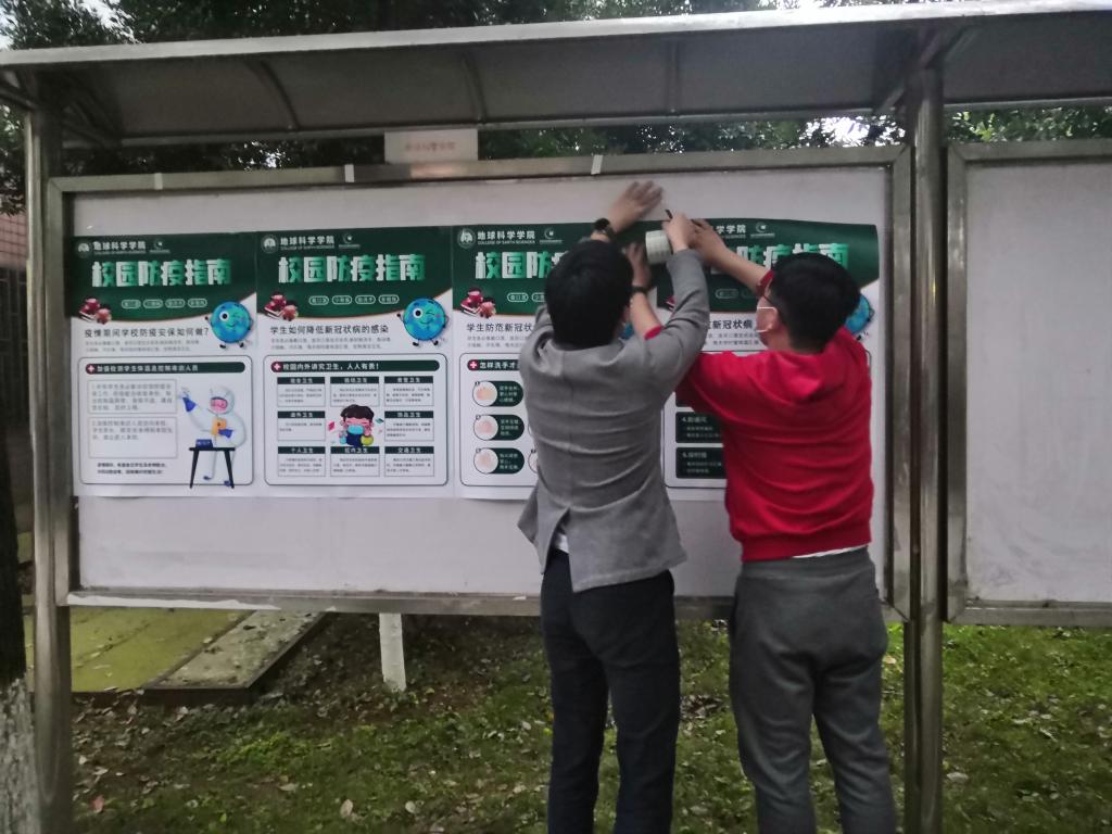 下午,学工办各年级辅导员老师到学院宿舍区的宣传栏,张贴了校园防疫宣传指南,提醒学生防疫注意事项,做好自我防护。在学生社区文化栏张贴了参加防疫工作的志愿者学生的宣传海报。另外,在宿舍区和学院楼贴上了防疫提示标签。