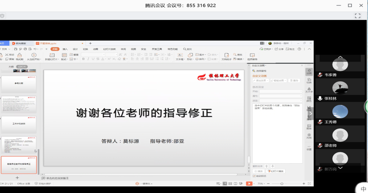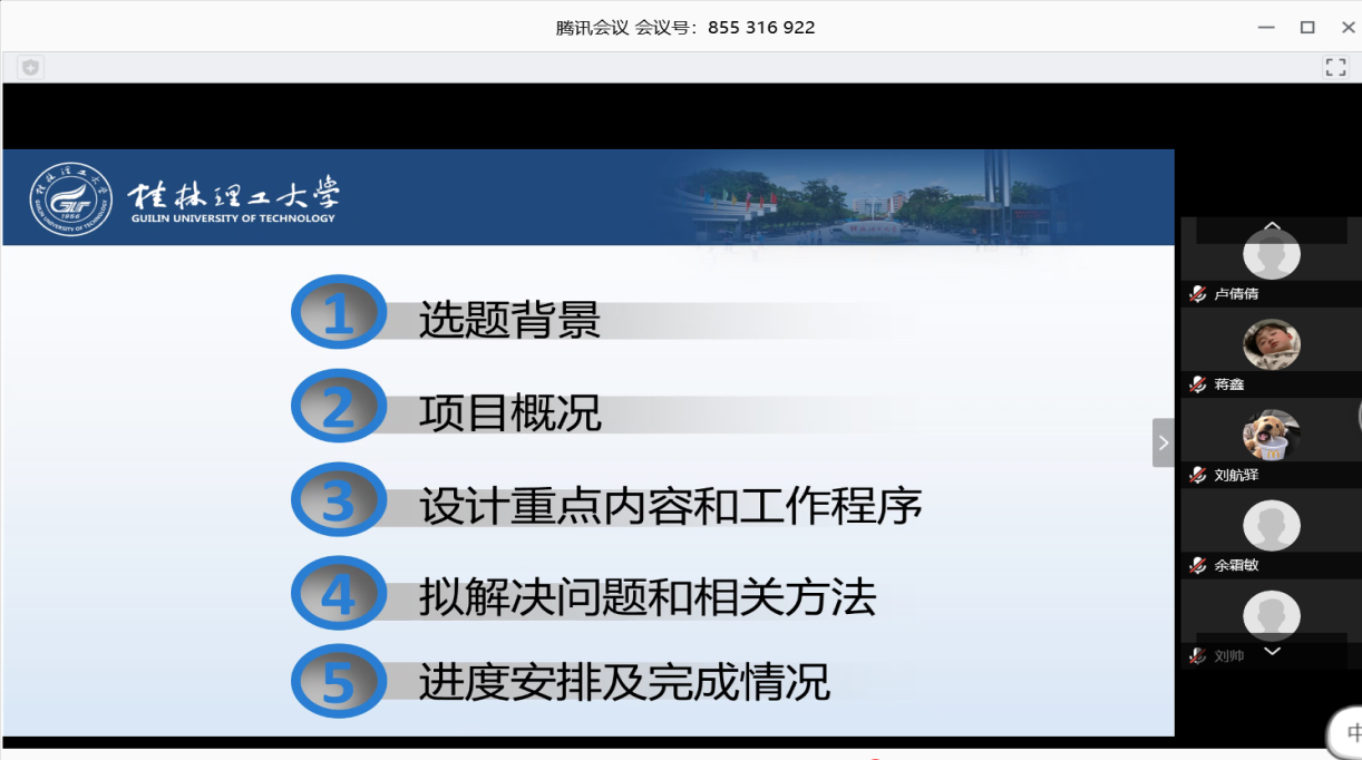 本次视频答辩是我教研室近期本科毕业工作的一个重要组成部分。为切实做好2020届毕业设计(论文)线上开题答辩工作,根据学生与老师网络情况制定了两种答辩方案,组织学生提前进入平台模拟预演,为线上答辩工作做了充分的前期准备,保证答辩工作顺利有序开展,既保障会议高效便捷,也保证程序的严谨性和答辩的严肃性。