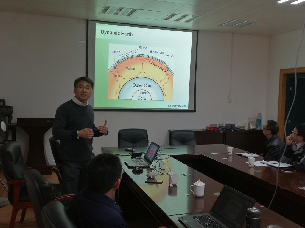 报告会上,杨英杰教授以“Imaging the Earth’s interior using background ambient noise”为题介绍了环境噪声成像技术的原理以及在壳幔结构研究、矿产勘探等方面的应用。罗银河教授则以“噪声面波及其在横波速度结构研究中的应用”为题介绍了噪声成像在工程、地热等方面的研究与应用。两位教授结合自己的研究为我院教师展现出了随机噪声在解决不同深度的地质问题的强大能力,并指出了该方法存在的问题以及发展方向。