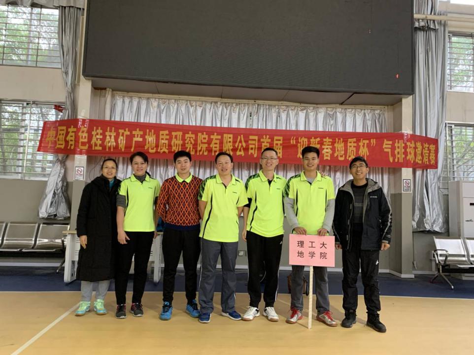 2020年元月4-5日,由中国有色桂林矿产地质研究院有限公司举办的“迎新春地质杯”气排球邀请赛在桂林市七星区人民政府体育馆举行。来自桂林市七星区人民政府、桂林市自然资源局、桂林海关、中国地质调查局岩溶地质研究所、广西区域调查研究院、广西三一〇核地质大队和广西第一地质队等9个代表团、100余名气排球爱好者组成10支队参加了比赛。我院教师应邀组队参加比赛。