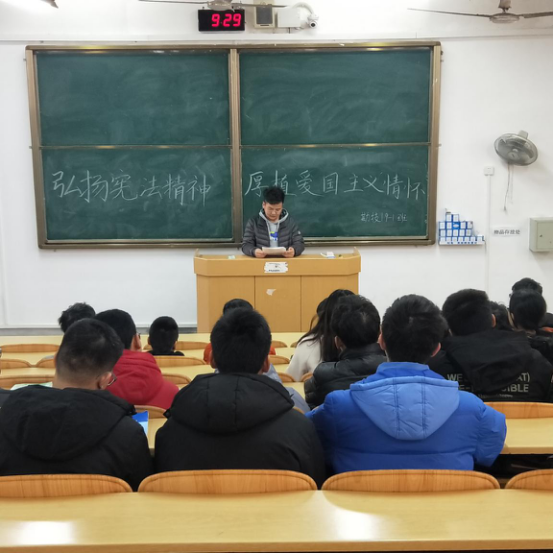 为了进一步普及宪法知识,加强宪法教育,弘扬宪法精神,维护宪法权威,增强师生法治观念,根据我校开展2019年“宪法宣传周”系列活动的安排,12月1日—12月7日,我院组织各班级开展了以“弘扬宪法精神,厚植爱国主义情怀”为主题的班会活动。班会的主要内容为,学习习近平新时代中国特色社会主义思想,习近平总书记全面依法治国新理念新思想新战略,特别是关于宪法的重要论述;党的十九大和十九届四中全会精神,支撑中国特色社会主义制度的根本制度、基本制度和重要制度;新中国宪法发展历程,宪法的地位和作用,宪法的基本原则和主要内容;新中国成立70年来特别是党的十八大以来我国法治建设的辉煌成就,社会主义核心价值观等。