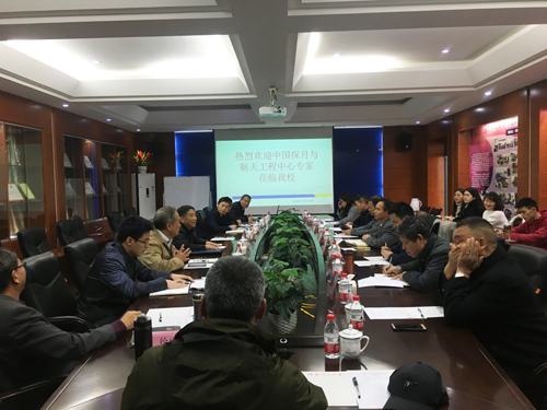 2019年11月28日,中国探月与航天工程中心探月三期总师胡浩,探月工程三期副总师、长征五号运载火箭工程总师孙为钢,中科院国家天文台副台长、探月工程三期副总师李春来,探月与航天工程中心三期部副部长王琼、主管高磊,探月工程三期探测器系统副总师彭兢以及探月工程三期地面应用系统副总师张广良一行7人来我校进行开展调研工作,并召开了“嫦娥六号与月球基地”科学规划座谈会。