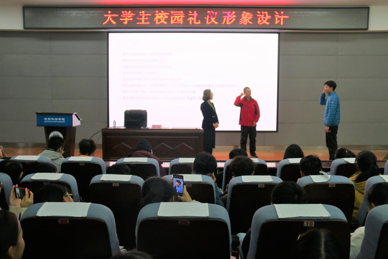 为提高2019级学生对个人礼仪形象的重视,2019年12年04日晚,学院在01501报告厅召开大学生校园礼仪形象设计主题讲座。此次主题讲座由我校艺术学院副教授马丽担任主讲,我院学工办陈文甫老师出席此次讲座。