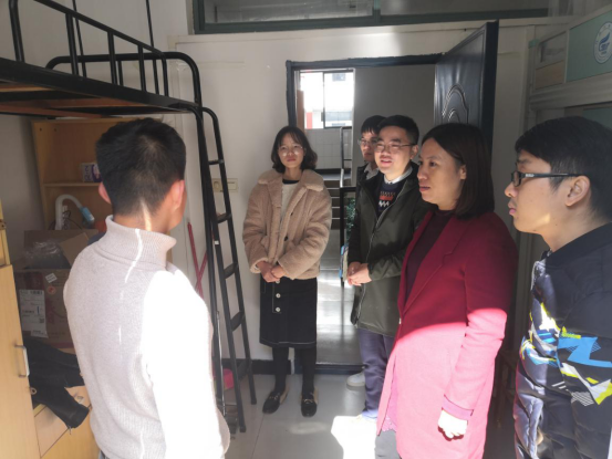 为切实做好学院学生公寓安全、卫生等方面相关工作,进一步提升学院宿舍安全管理水平,营造良好的学习休息环境,塑造学院学生的良好精神风貌,2019年12月3日中午,学院党委副书记陶剑飞以及各年级辅导员深入本科生和研究生宿舍,进行宿舍安全及卫生检查工作,并针对之前安全检查时部分学生宿舍出现的安全隐患再次进行排查落实。