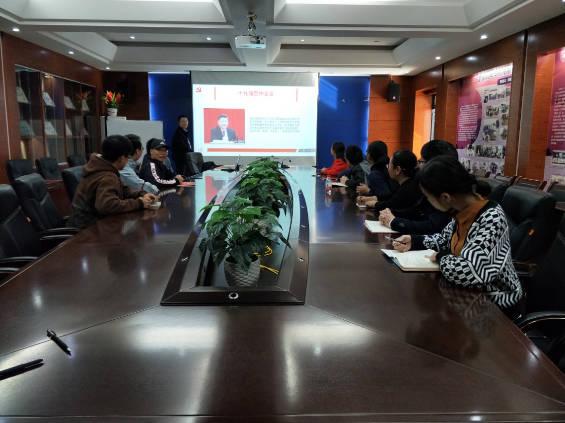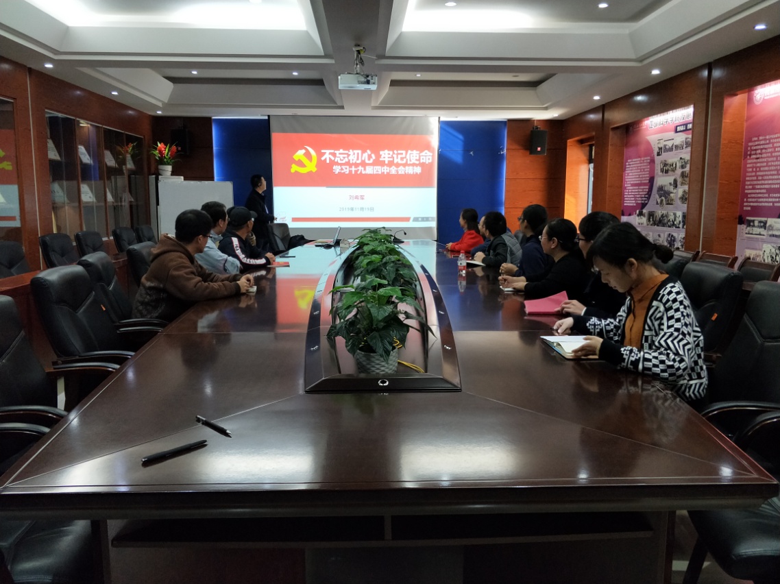 2019年11月19日,教育部工程中心主任刘希军同志为教工第四党支部的同志们上党课,组织学习了十九届四中全会精神。党的十九届四中全会已胜利落下帷幕,我党的各项工作又迈向了新的起点,抓好总书记重要讲话精神和十九届四中全会精神的学习贯彻就是当前一个时期最重要的任务。第四支部的同志们也掀起一场学习热潮,以十九届四中全会精神为引领扎实开展党支部的各项工作。通过本次主题教育党课学习,四支部的同志们一致认为要把总书记重要讲话精神和十九届四中全会精神学习好、领会好、贯彻好,要做到坚持学思践悟、学通弄懂、学以致用,真正用先进思想武装头脑、指导和推动beat365手机版官网入口的各项教学及科研工作,把会议精神切切实实转化为党支部各项目工作发展的强大动力。号召同志们要更加紧密地团结在以习近平同志为核心的党中央周围,坚定信心,保持定力,锐意进取,开拓创新,为坚持和完善中国特色社会主义制度、推进国家治理体系和治理能力现代化,实现“两个一百年”奋斗目标、实现中华民族伟大复兴的中国梦而努力奋斗。