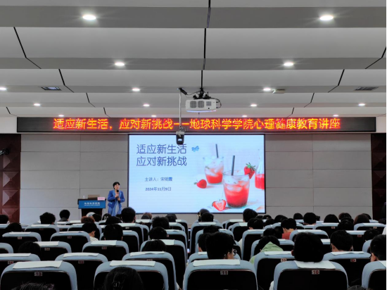 11月8日,学院在01501报告厅开展“适应新生活,应对新挑战”为题的心理健康教育讲座。讲座由学校心理中心宋明霞老师主讲,300余名2024级新生参加讲座。