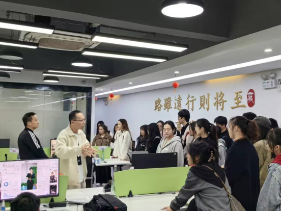 在企业现场负责人的认真讲解下,师生们详尽的了解了华娱的企业文化、运营概况、企业发展历程等情况。在场的师生们通过自身的亲身体验,对新媒体的设计、传播与运营的最新动态与实战技巧有了一定的了解,对新媒体的各项工作有了初步的认知。