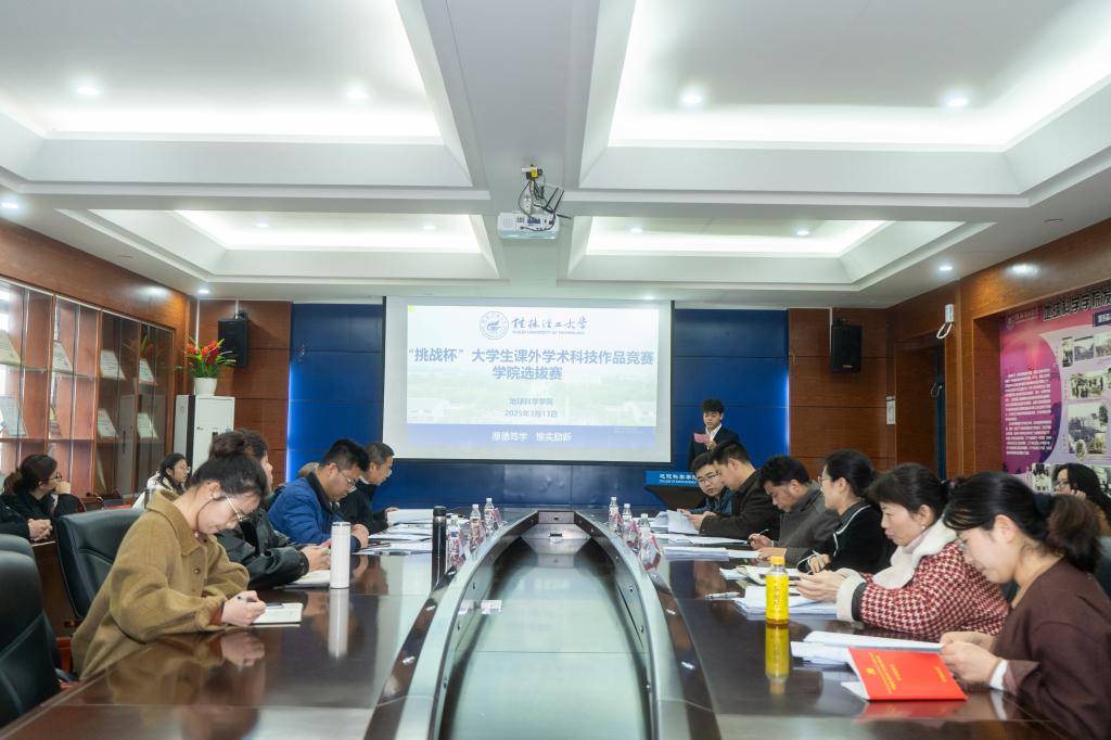 为激发学院青年学子创新潜能,锤炼科研能力,选拔优秀作品参加学校“挑战杯”大学生课外学术科技作品竞赛,全面提升学院团队参赛作品的层次和水平,3月13日下午,学院在01215会议室顺利举办了“挑战杯”全国大学生课外学术科技作品竞赛院级选拔赛。学院地质工程教研室主任陈立春、勘技教研室副主任俞贵平、自然地理与资源环境教研室教师李仁成、资勘教研室教师丁伟、学校团委科技实践部副部长卢桂盛、环境科学与工程学院团委书记孙云龙老师作为评委出席比赛。选拔赛由学院团委书记吕思慧主持。